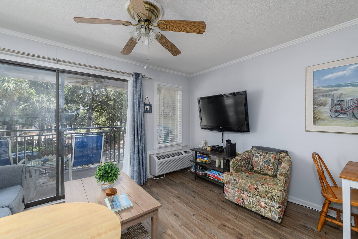 Indulge in beachfront bliss at our conveniently located condo, just steps away from the sandy shores and a refreshing outdoor pool. Situated within walking distance (0.4 miles, a mere 9-minute stroll) from the vibrant Coligny Plaza, you'll find yourself immersed in a dynamic array of restaurants, shops, and nightlife options. There are also a number of affordably priced bike rental shops nearby. Arrive stress-free with gated off-street parking, providing peace of mind during your stay. Please note that the built-in lower bunk bed is not suitable for adults. For those in need of fast internet speeds, we've got you covered with Spectrum internet offering speeds up to 500 MB. Experience the best of beachside living at our inviting condo retreat. This is a non-smoking condo.