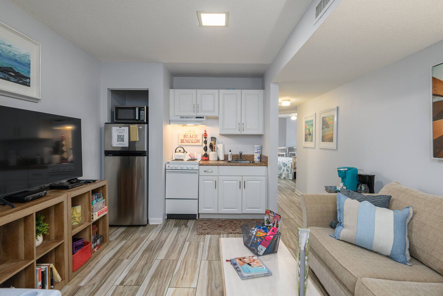 Our cozy retreat offers a basic condo perfect for those on the go. This unit features a kitchenette, master bedroom, full-size bathroom, and a living area ideal for relaxation. While there's no formal dining table, the living area coffee table or bedroom corner table provide convenient spots for enjoying meals or coffee while watching TV. With a good-sized fridge, stove and oven, you have the option to cook if desired. Ideal for guests looking for a simple yet comfortable base while exploring the beach, town, or nearby attractions like Savannah. Guests can also take advantage of complimentary tennis rackets and balls for use at the complex's tennis/pickleball court. Additionally, our amenities include an outdoor pool, indoor pool, and jacuzzi. Discover the convenience of our stellar location just three blocks from the beach. Situated within walking distance (0.8 miles, 16 min walk) to Coligny Plaza, guests can easily explore restaurants, shopping, and nightlife. Enjoy ungated off-street parking for added convenience. For those seeking simple beach living with an unbeatable location, this condo offers the perfect retreat. But the perks don't stop there. Step outside and discover a world of excitement just waiting to be explored. With shopping, dining, and vibrant live music just a leisurely stroll away, every day is a new adventure at Hip Nautic.